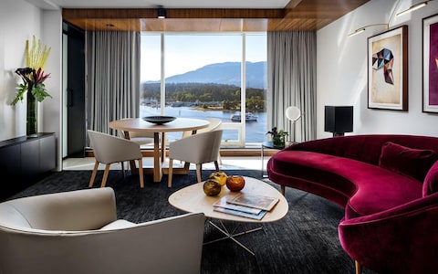 Fairmont Pacific Rim may have a modern exterior, but inside there’s a traditional warm welcome. Chilled live guitar or piano-playing singers croon daily, and the lobby rings with the sound of ice crashing in cocktail shakers and flirty conversation. Decadent rooms and suites come with ravishing harbour views. The spa is one of the city’s best, with wine-based vinotherapies and treatments with Canadian ingredients. Cosy outdoor cabana beds, fire pits, a pool and hot tubs overlook the 'sails' of Canada Place and the North Shore mountains.